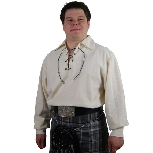 Yes that is a hassel to fasten but cutting button holes only dates from the appx16th century. The shirts are usually a pretty simple pattern with a collar and a sort of V-shaped from opening sometimes laced with leather sometimes left plain. What Is A Kilt Shirt.